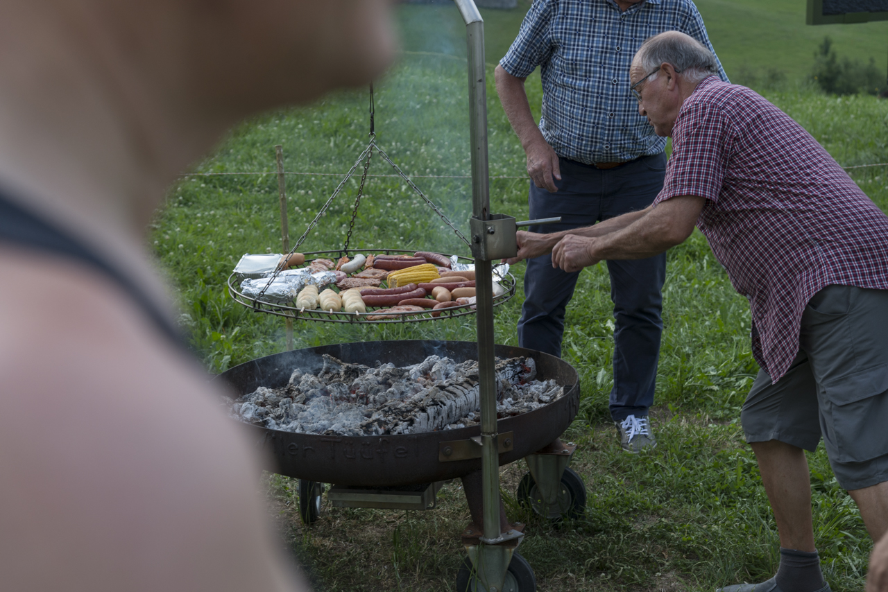 «Wir hatten bisher immer riesiges Glück mit dem Wetter», meinte Rita Gmür am Ende des Abends, als sie die letzten Bänke gemeinsam mit einigen Helfern zurückstellte. Und wirklich: Von den Anwesenden konnten sich nur wenige an einen Grillabend erinnern, der wegen Schlechtwetter verschoben oder gar abgesagt werden musste. Eine solche Regenwand ist auch etwas, das lediglich dem Feuer einen Dämpfer versetzt hatte. Mit einigen neuen Holzscheiten waren die Flammen schnell wieder entfacht.