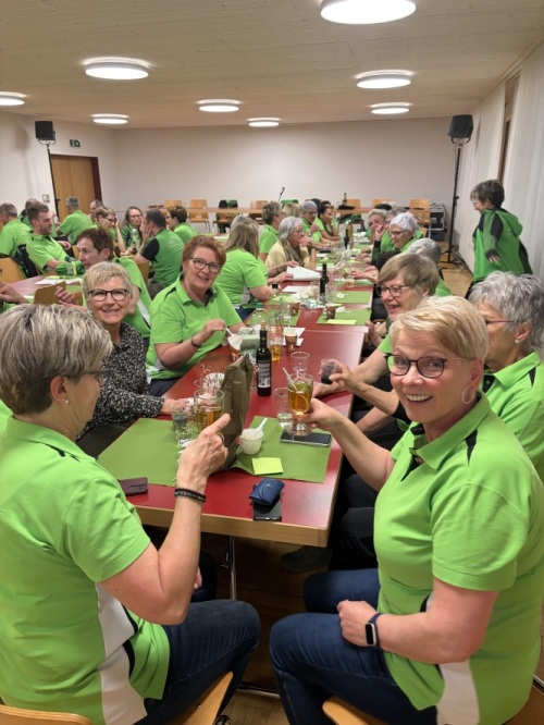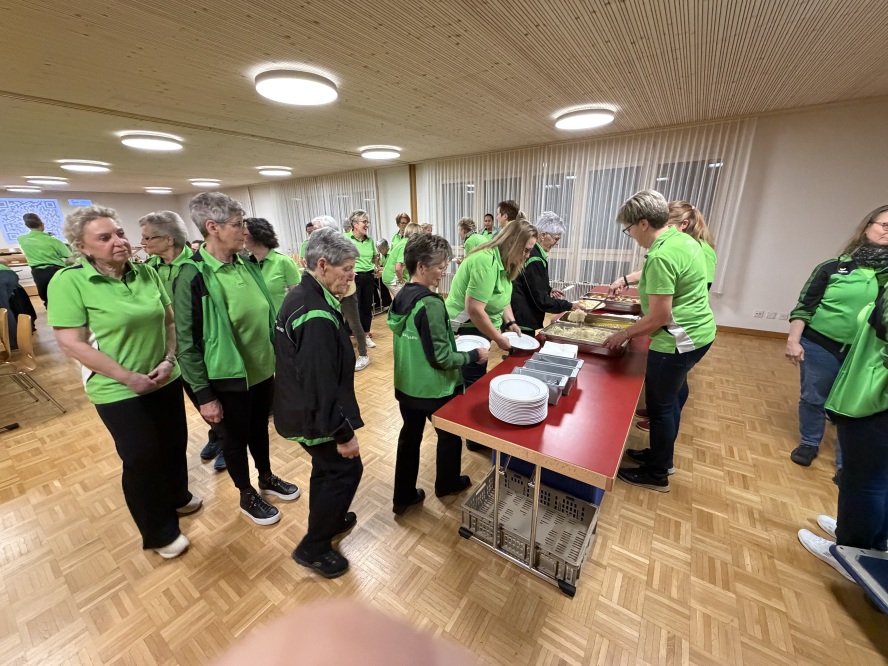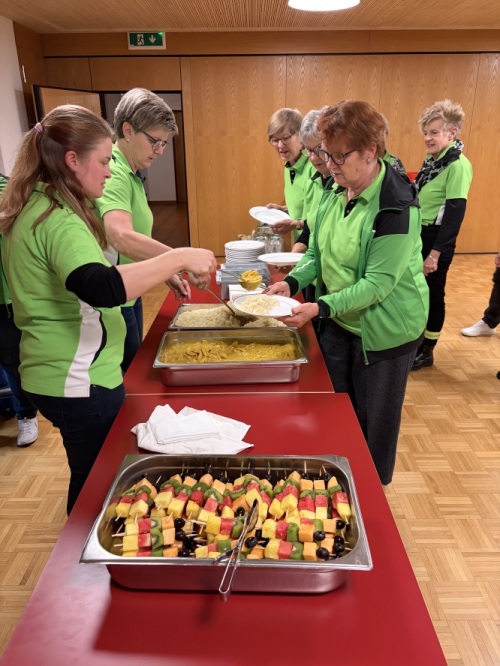 Nach dem 3. Traktandum wurde das Nachtessen aufgetischt, es gab ein feines Riz-Casimir vom Toggenburgerhof in Kirchberg. Zum Dessert, welcher wir später zu uns nahmen, gabs Fruchttörtchen, von welchen jemand 4 oder 5 genoss…! Weiter wurden folgende Mitglieder für ihre langjährige Mitgliedschaft geehrt:
