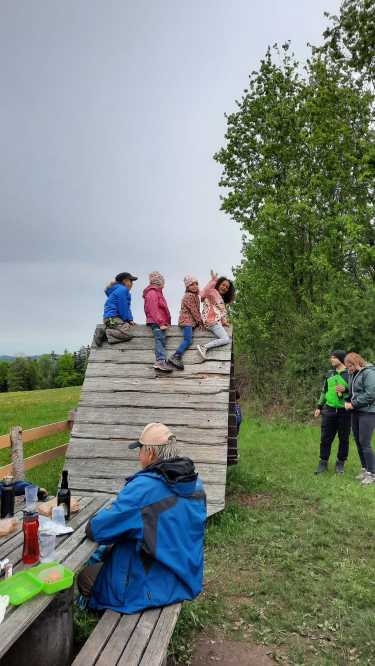Zur Überraschung aller waren lagen Getränke bei der Feuerstelle bereit, dies vom Turnverein gesponsert wurden. Um 13.30 Uhr nahmen wir nach gemütlicher Mittagspause den Rückmarsch unter die Füsse. Die Zusatzschlaufe übers Moos, die der Wanderleiter noch im Programm hatte wurde jedoch nicht mehr begangen. Einige mussten nämlich dringend auf die Toilette und andere meinten, der Regen könnte gemäss Wetterbericht bald einsetzen. Darum änderten wir unseren Plan und gingen ins Restaurant Berghof, wo einige blieben definitiv länger blieben als andere.