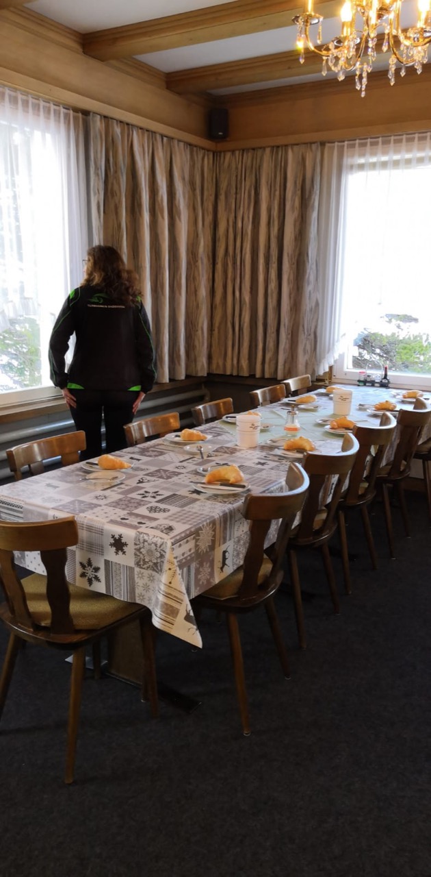 Morgenessen. Lecker. Kurzum: Perfekt für den bevorstehenden Sporttag. Nach der mehr oder weniger durchschnarchten Nacht war der Morgenkaffee genau das, was wir nun brauchen konnten. Dann hiess es erneut: Ab auf die Piste; Und zwar bei einem erneut grossartigen Wetter (zweiter Verweis), welches sich jedoch gemäss Vorhersage auf den Nachmittag hin verschlechtern sollte. Jänu, Augen zu und durch! Ein paar Regentropfen werden uns nichts ausmachen.