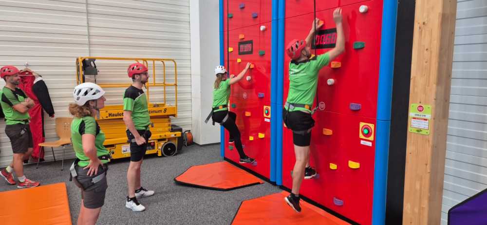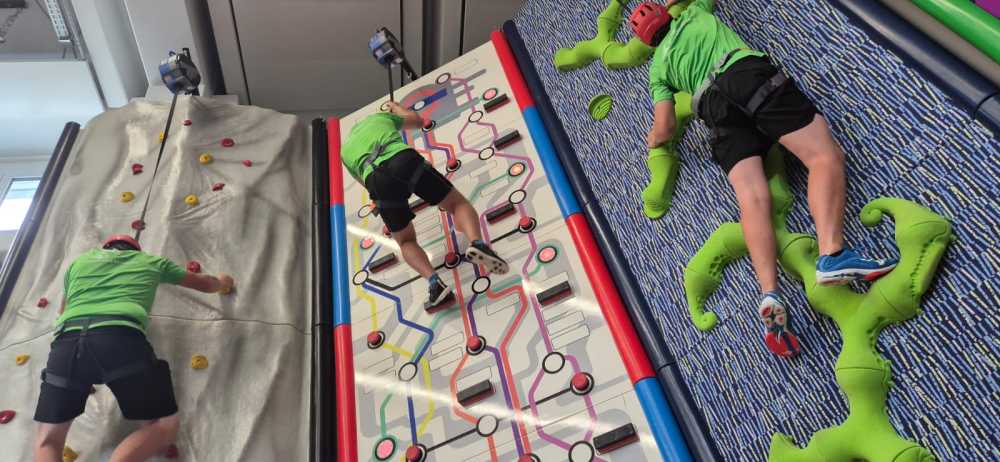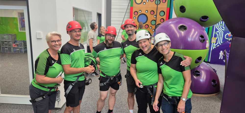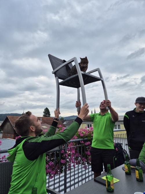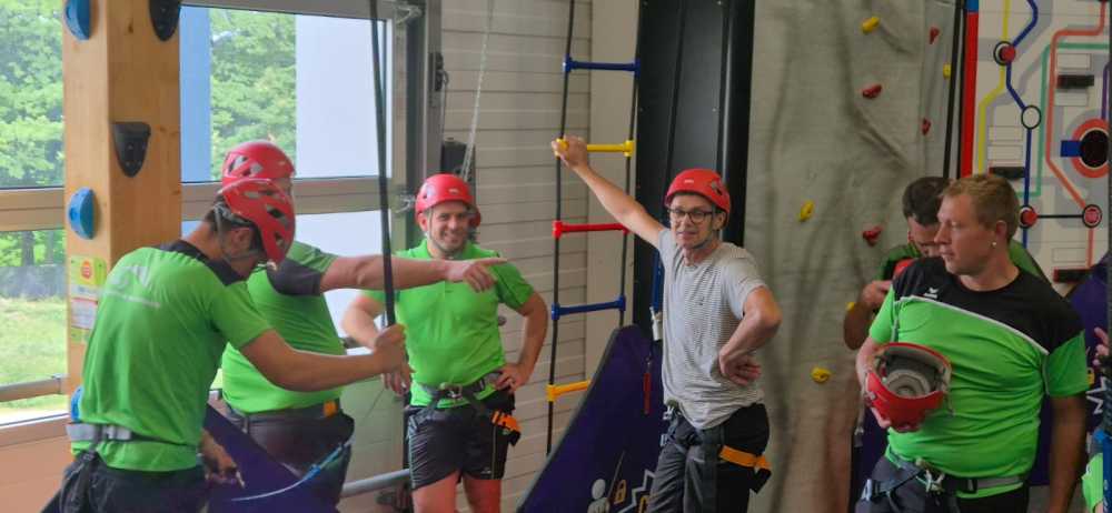 Der Vereinsausflug begann steil – sehr steil. Noch bevor der erste Kaffee dampfte, kämpften wir uns hoch zum Start-Brunch auf dem Balkon. Der Lohn: Gipfeli mit Aussicht. Gut gestärkt wagten wir uns in die Kletterhalle Herisau. Dort zeigte sich rasch, dass Spinnen im Vergleich zu uns wahre Profis sind. Manche hingen wie Deko in der Wand, andere erklommen sie mit Stolz wie Reinhold Messner im Miniformat.