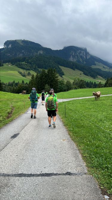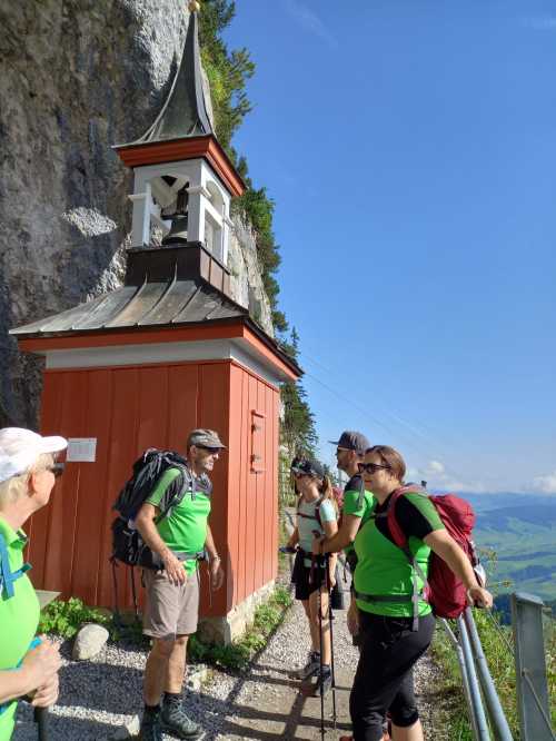Am Nachmittag tuckerte der Zug nach Appenzell, wo eine malerische Wanderung durch Wiesen und Wälder bis nach Wasserauen folgte. Während die einen bequem die Bahn auf die Ebenalp nahmen, entschied sich die Hardcore-Fraktion für den direkten Aufstieg – inklusive roter Gesichter.
