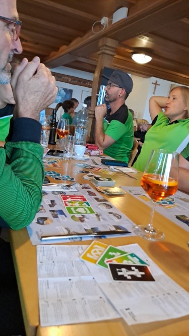 Oben belohnte uns ein feines Nachtessen. Danach folgte ein Spieleabend, bei dem die Lachmuskeln fast stärker beansprucht wurden als die Waden.