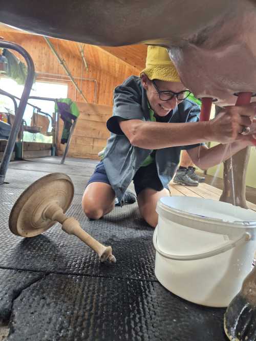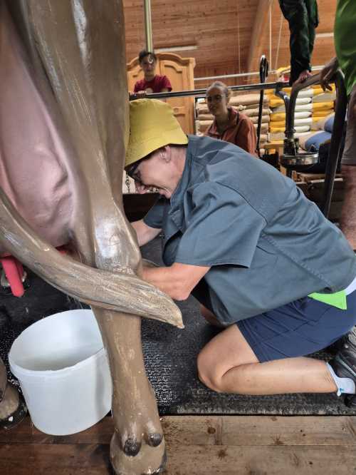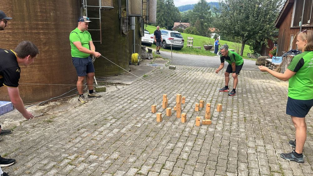 Zum krönenden Abschluss gab es die Bauernolympiade. Beim Wettmelken, Stiefelwerfen oder Talerschwingen kamen bisher verborgene Talente ans Licht. Beim Sägen zeigte sich: Holz ist zäher und schwerer, als man denkt. Am Ende hatten alle ihre Qualitäten bewiesen – und vor allem jede Menge Spass.