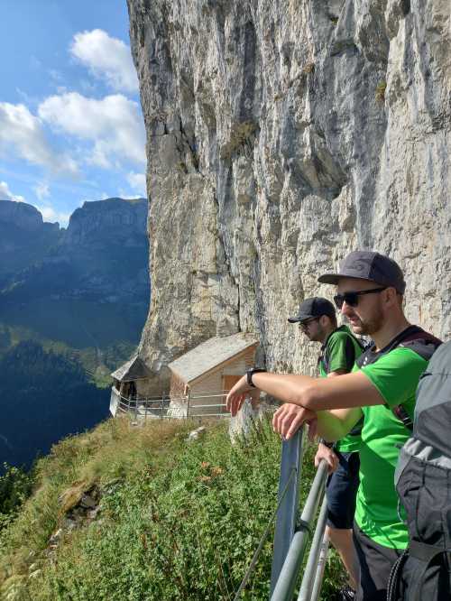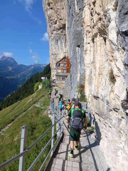 Am nächsten Morgen brachte uns der berüchtigte Weg über den Äscher zum Seealpsee. Manche spürten diesen Wander-Abschnitt noch Tage später – sehr intensiv.